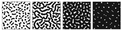 Mathematical biology has always been obsessed with shapes, specially because many that look so complicated can actually be created with simple rules. Take the Turing patterns – these are regular shapes that obey the same type of rules but can make spots, stripes, labyrinths or holes by changing its parameters.